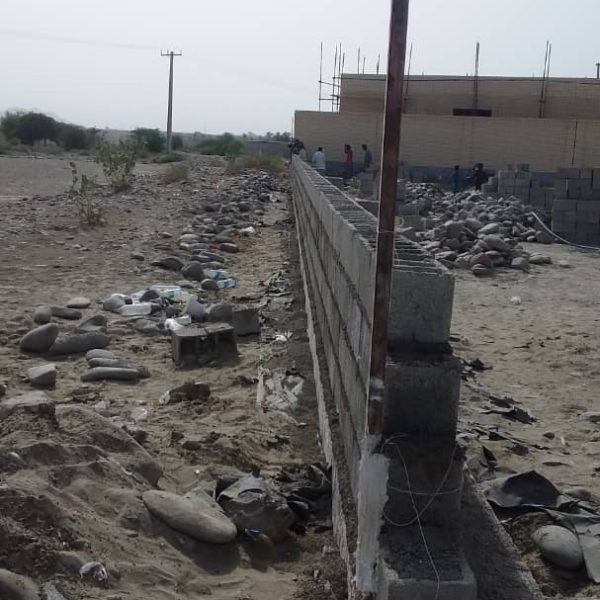 مراحل تعمیر و باز سازی یک باب مدرسه و دیوارکشی کامل همراه با ساخت ۴ سرویس بهداشتی که در جریان سیل بلوچستان تخریب شده بود توسط موسسه خیریه حضرت فاطمه زهرا (س) در حال انجام است.